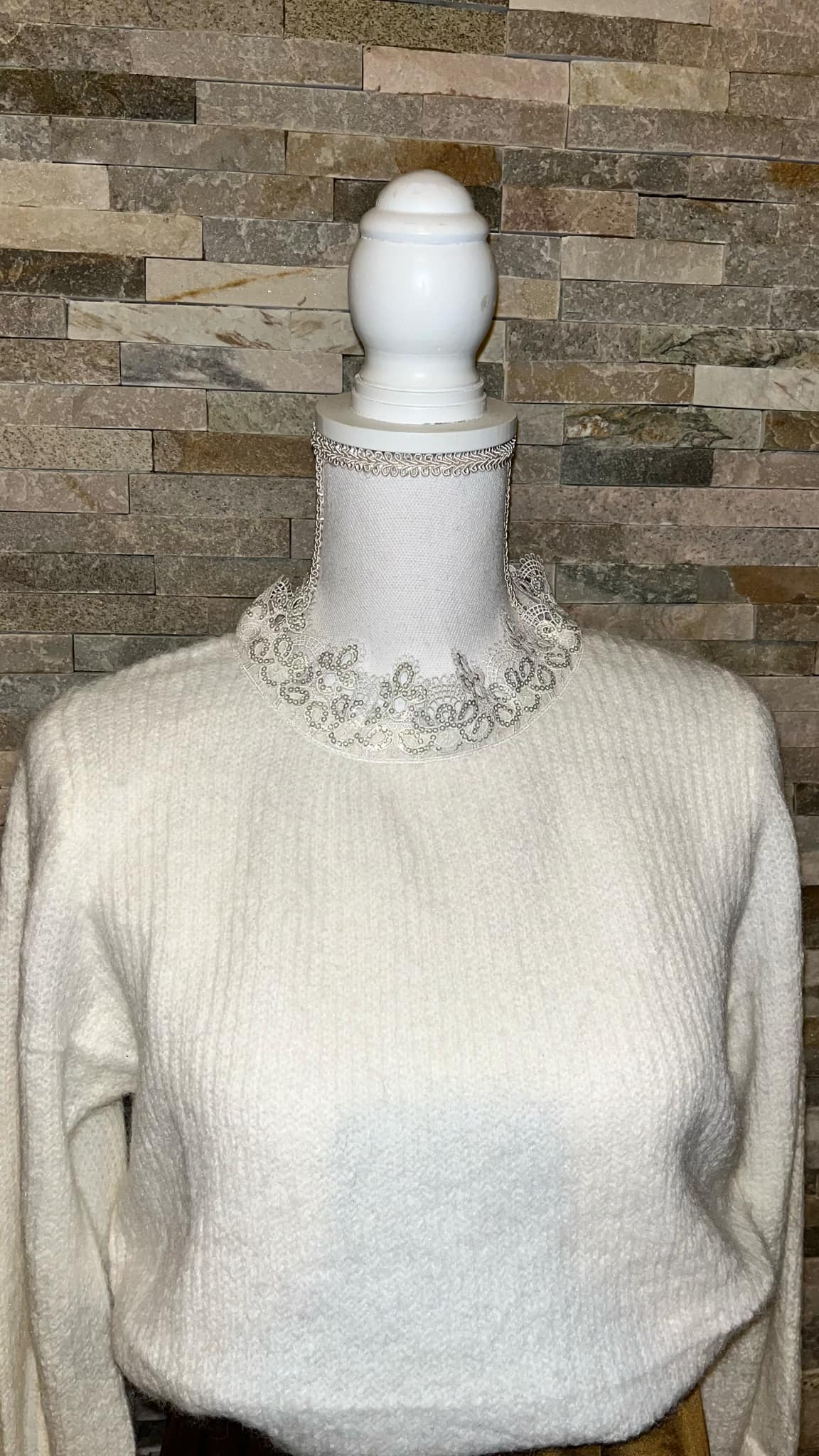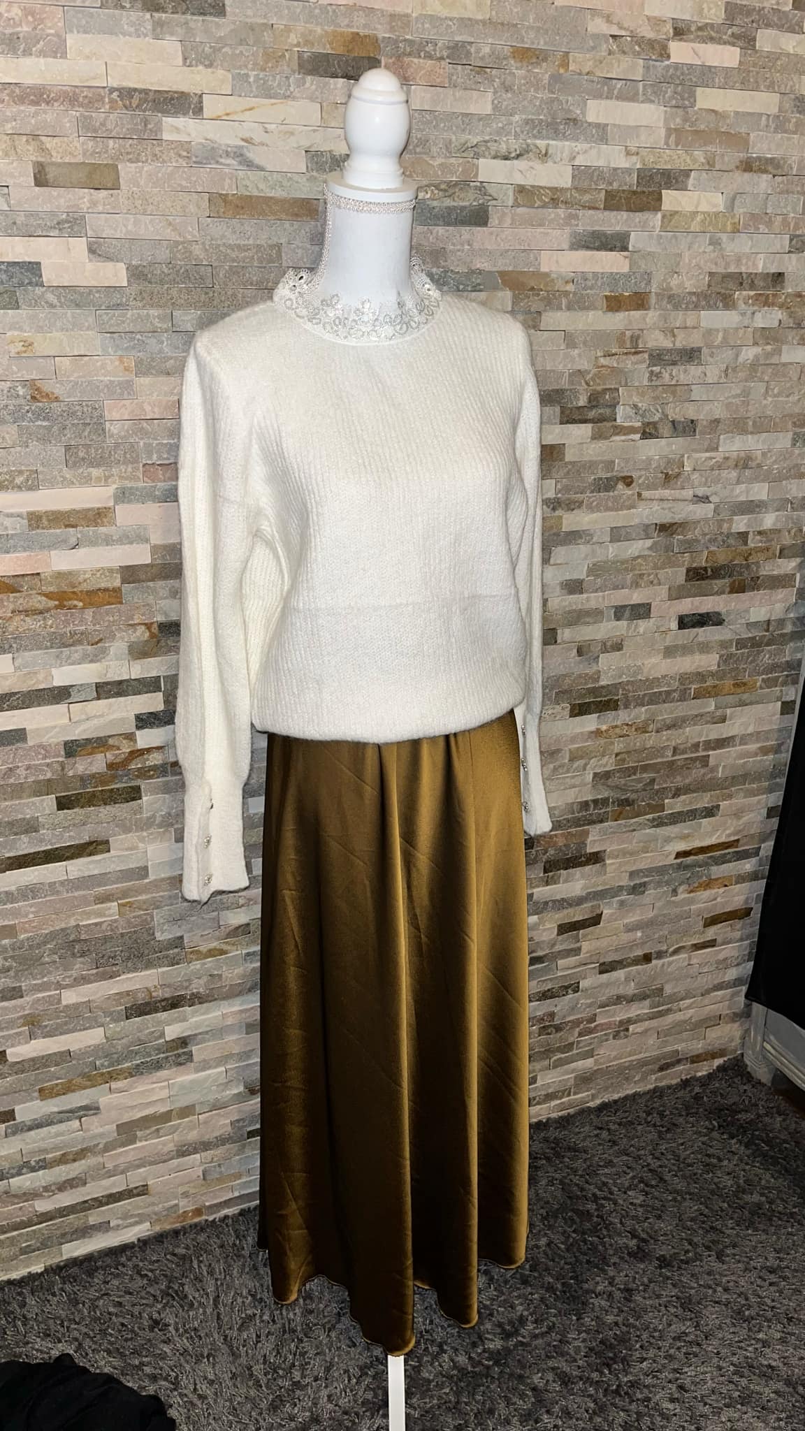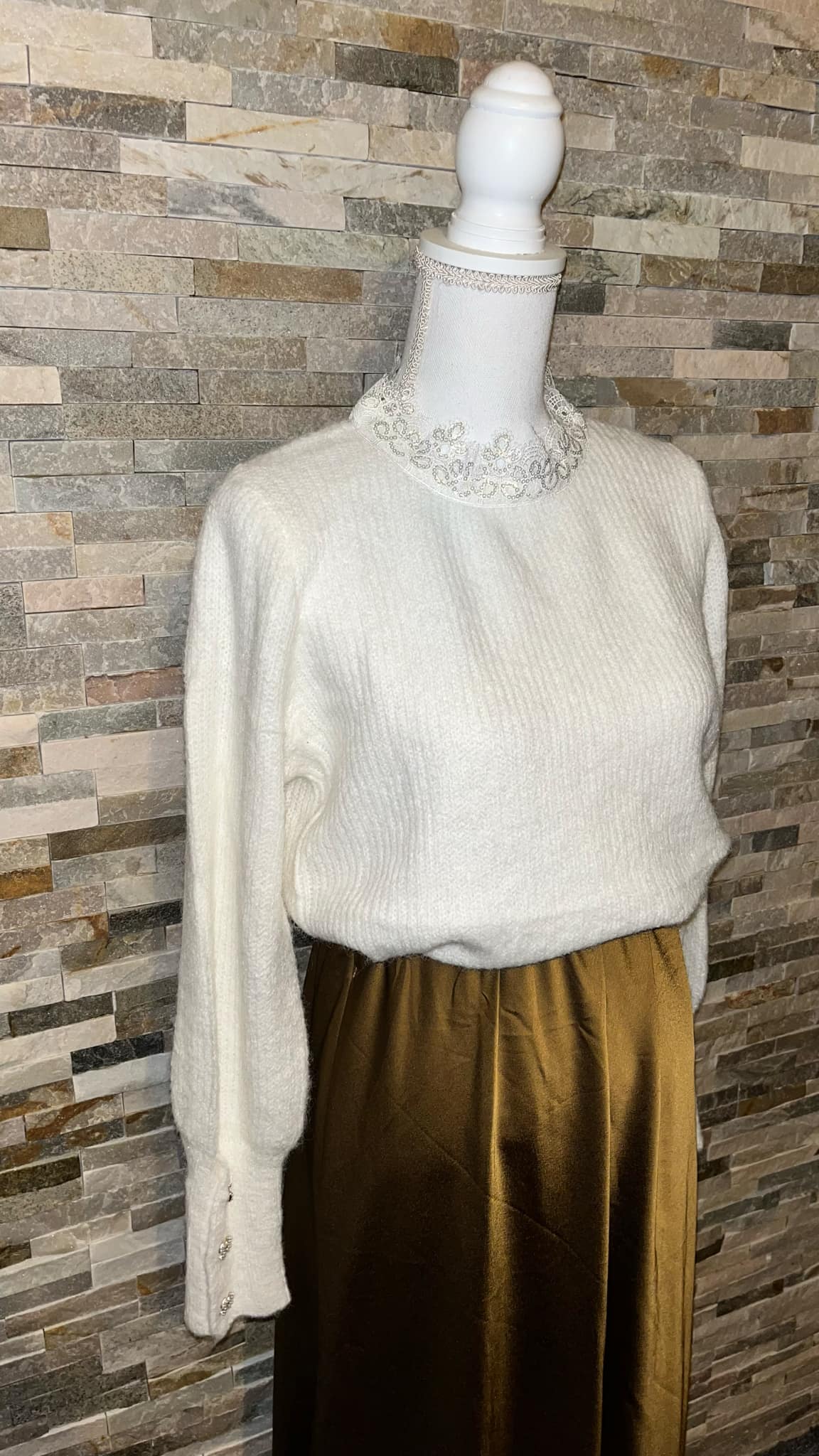 Pull blanc en maille, sa douceur vous fera fondre et ses détails aux manches apporteront un côté chic à votre tenue